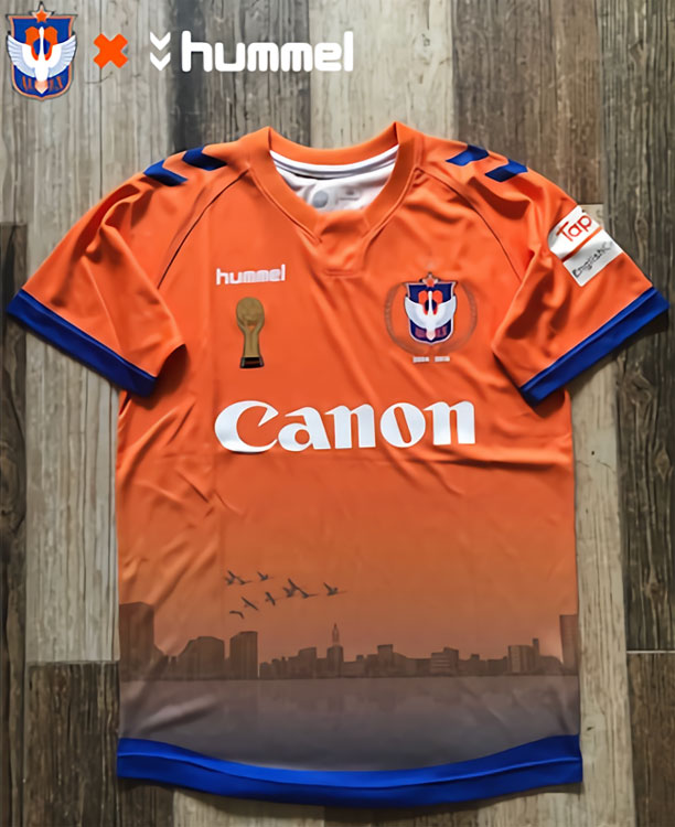 今季もユニフォームサプライヤーはHummelで継続。前面には「新潟の信濃川、萬代橋近辺の風景と11羽の白鳥」をグラフィックプリント。新潟の空からシンガポールの夜明けを目指し羽ばたく姿は、アルビレックスの11人の選手がシンガポールの地で飛躍する姿を連想させる。胸スポンサーは「Canon」で継続している。