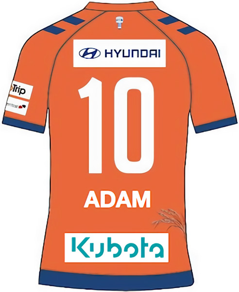 背面の首元には「11羽の白鳥」が目指す本拠地ジュロン・イースト・スタジアムの時計台をプリント。腰部分には“実りあるシーズン”になるよう願いを込めた「新潟のコシヒカリの稲穂」のグラフィックが入る。背中スポンサーは「HYUNDAI」と「Kubota」をプリント。