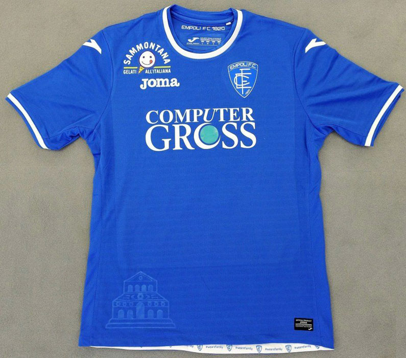 胸スポンサー「Computer Gross」はエンポリにあるPC販売企業。そして右鎖骨の可愛いスポンサーロゴ「SAMMONTANA」はイタリアのジェラート販売チェーン。どちらの企業も90年代からエンポリをサポートしている。