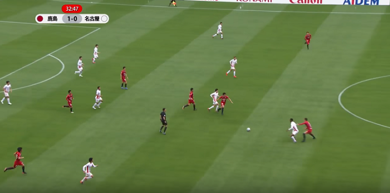 1-0とリードし迎えた33分、前がかりになっていた鹿島は敵陣でボールを奪われ、カウンターを受ける。