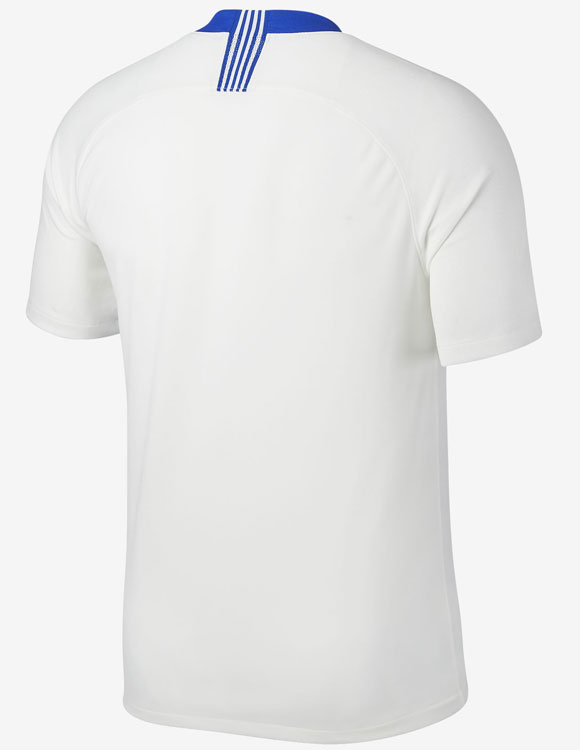 こちらはレプリカユニフォームの背面画像なので、ヴェイパーニットの特徴が見え難い。首元にはギリシャ国旗カラーのテープを配している。