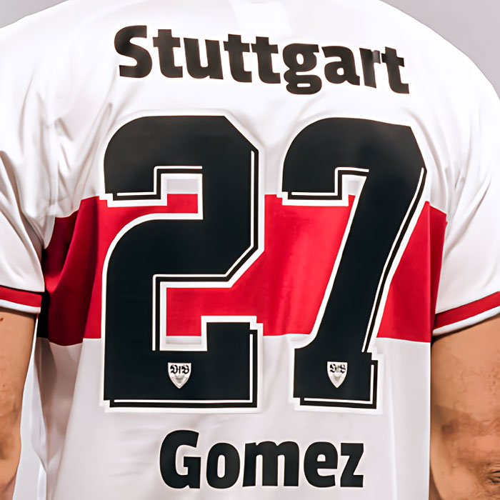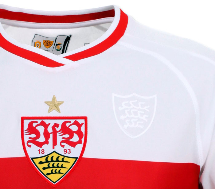 ホワイトを基調にレッドの差し色で、伝統的なシュトゥットガルトのユニフォームデザイン。しかしこれまでと大きく異なるのはエンブレムの位置で、1986-87シーズン以来31年ぶりに胸中央に配している。