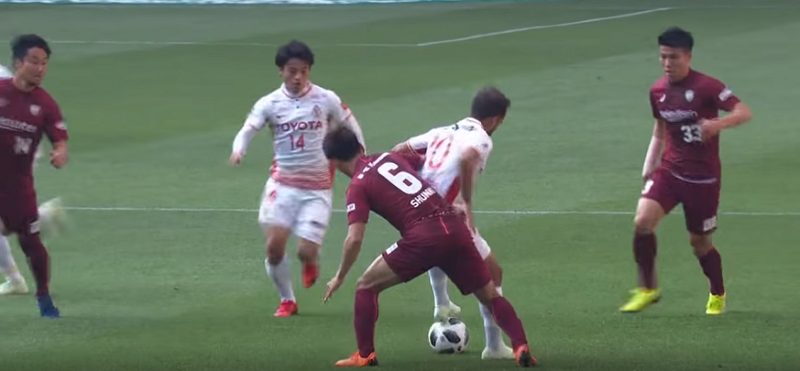 するとガブリエウ・シャヴィエルは高橋峻希を背負ったままボールを収め、なんと後ろを向いた状態で股抜き突破に成功!さらには長谷川アーリアジャスールへとパスを通し、チャンスを繋げてみせた。