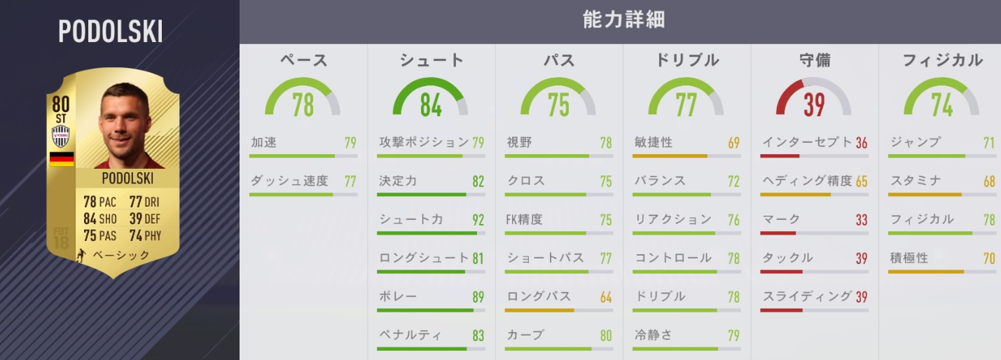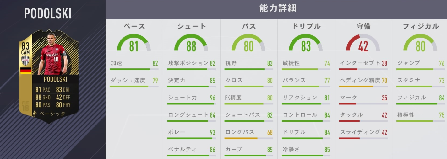 もともとシュート関連値は高いが、それがさらに強化されている。ドリブルとフィジカルもいい感じに。
