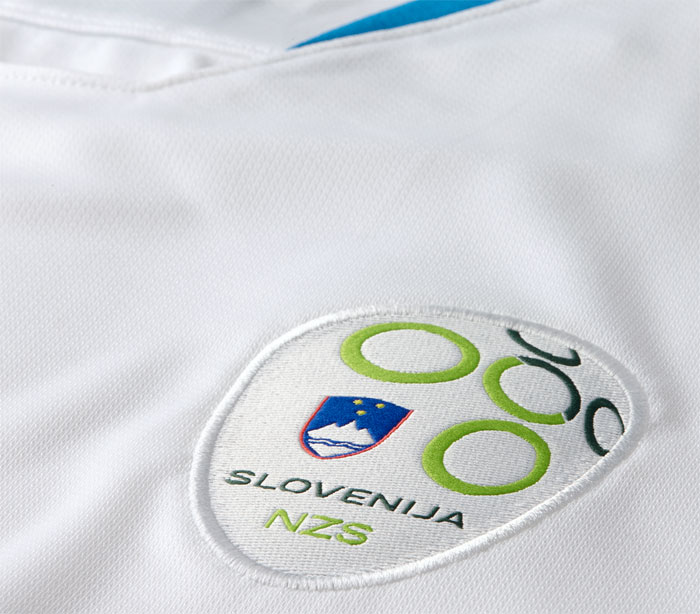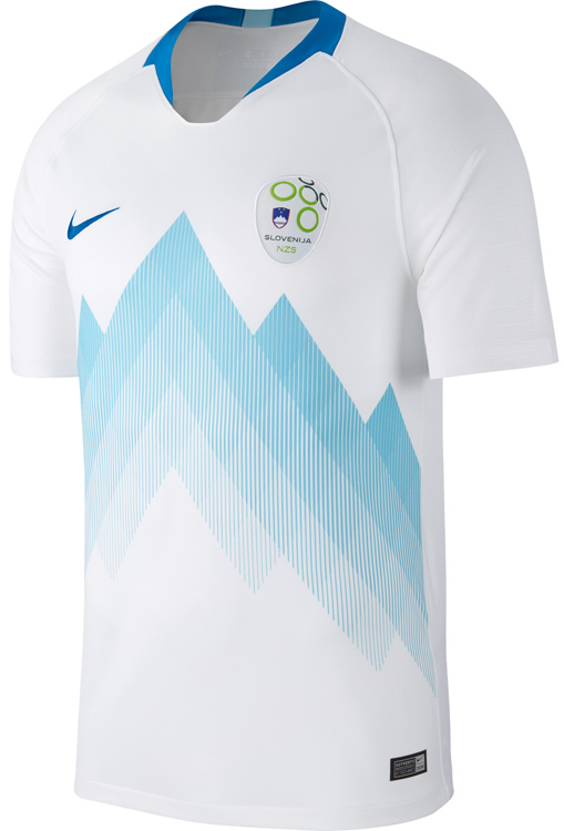 ホームはホワイトを基調に、国旗や国章にも描かれているスロベニアの名峰トリグラフ山を、ブルーのグラフィックでデザイン。近年のスロベニア代表ユニフォームではお馴染みのデザインとなっている。