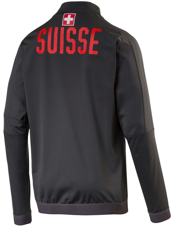バックプリントはフランス語で国名「SUISSE」と、存在感があるスイス国旗をプリント。