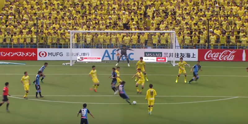 柏のゴール前には選手が密集しており、ボールの軌道が見えづらかったはず…。それでも触れてしまうのは流石!ゴールを革新していたのか、川崎MF大島僚太は両手をあげ喜ぶ準備を見えていた。