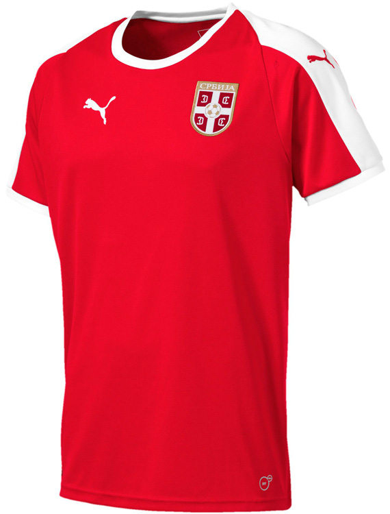 ホームキットはレッドを基調。かつてのセルビア・モンテネグロが分裂後、セルビア代表は一貫してレッドをホームカラーとしている。シャツ自体は汎用デザインなので強烈な個性は感じないが、このシンプルさは代表チーム向きとも言える。