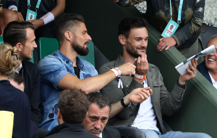 ジルーとロリスは隣通しで観戦していたようで、サインを求められる場面も。