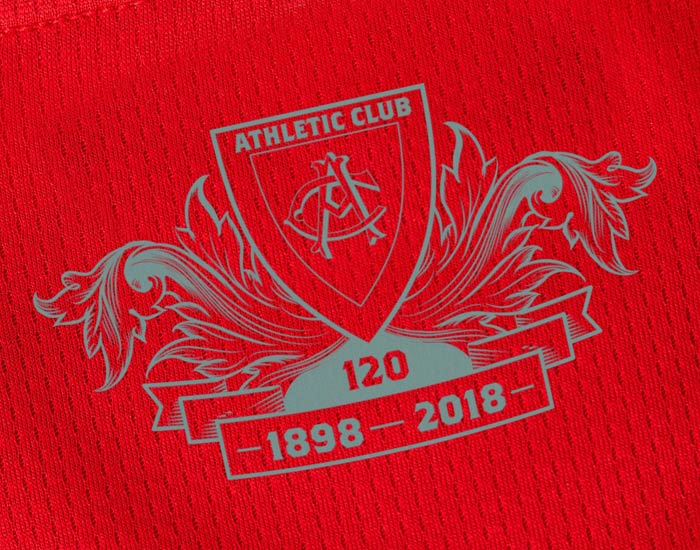 首元の内側にはクラブ創立120周年を記念したエンブレムがプリントされている。中央の盾形内にあるロゴ「AC」はクラブの正式名称“Athletic Club”の略称で、初期のユニフォームに使われていた。