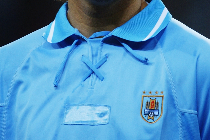 そうしたなかで目を引いたのはこのウルグアイ代表のホームモデル。1930年第1回ワールドカップ優勝モデルを模し、襟元をレースアップした仕様となっている。優勝経験国ながら、アメリカ、フランス大会では南米予選を勝ち抜けず、12年ぶりの出場となった極東の地で、暑さ対策など考えていないような潔さに敬意を表したい。