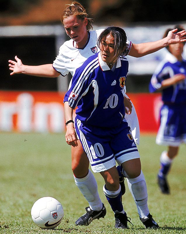 女子代表からも紹介。1999年5月のアメリカ代表戦での一場面で、当時20歳の澤穂希。チームはシドニー五輪出場権が懸かった女子ワールドカップを目前に控え、緊張が高まっていた。