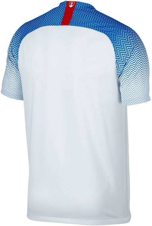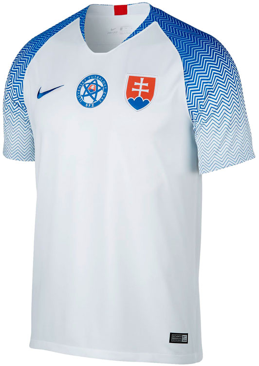 ホームキットはホワイトを基調に、袖にはブルーのジグザグのグラフィックをあしらっている。Nikeによればこのジグザグは「スロバキアを象徴する逆さピラミッドの歴史的建造物」を称えたものとのこと。