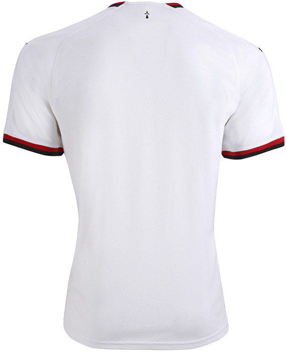 アウェイは伝統的にホワイトを基調にブラックの差し色で、これはレンヌ市の旗・紋章と同じカラー。シャツの下部にはアーミンの紋様が入る。