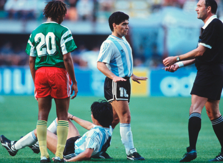 ディエゴ・マラドーナ擁する前回王者アルゼンチンが0-1で敗れた衝撃の開幕戦。しかしその結果以上に人々の度肝を抜いたのは、カメルーン代表FWフランソワ・オマン=ビイクによる決勝弾だ。