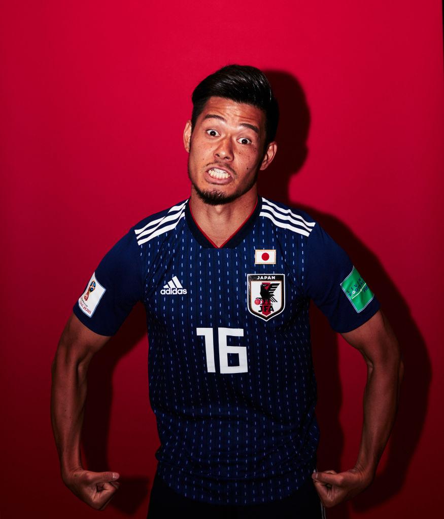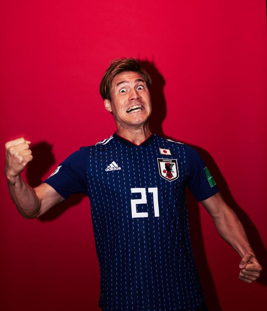 公式ポートレイト撮影は現地入りしたチームが続々と済ませており、キメ顔からおどけたポーズを取る者、覆面姿で現れる選手までさまざま。ただ中でも山口、酒井の“ふざけ具合”は最上位で、その表情はもはやお笑い芸人の領域である。