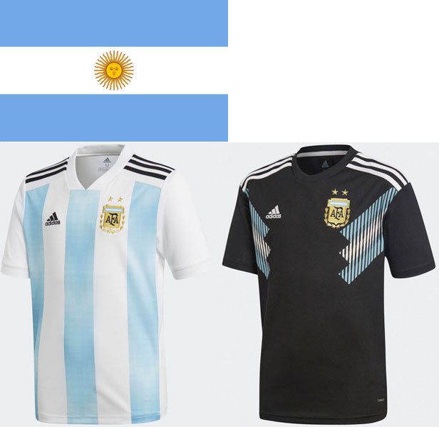 ホームはシンプルに国旗カラー。アウェイにも取り入れている。青は「青空、海」、白は「ラプラタ川」。中央には「五月の太陽」を配している。なお青は「正義、真実、友情」を、白は「平和」を象徴するとも言われる。