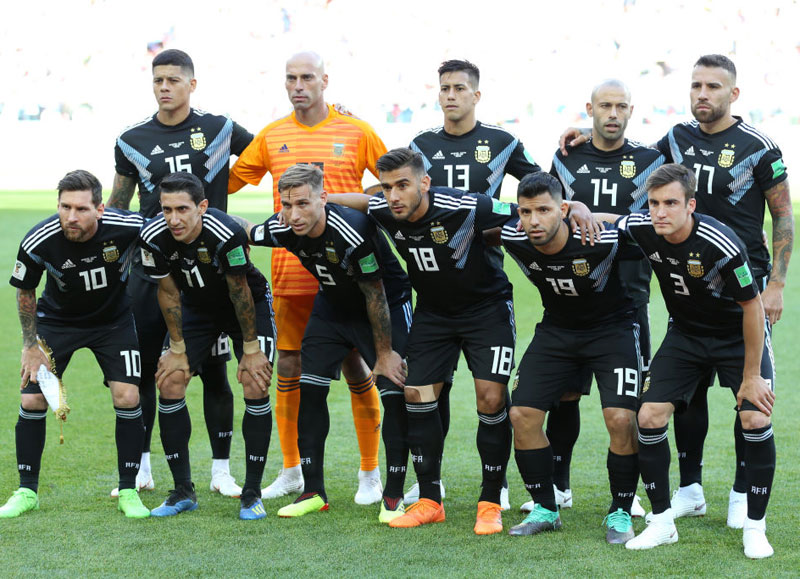 ホーム扱いのアルゼンチン代表はアウェイキット。上から「黒-黒-黒」を着用。