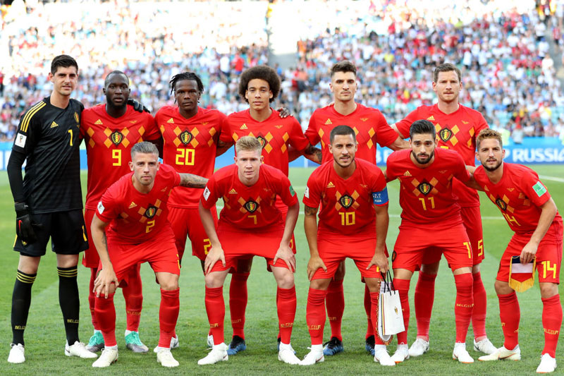 ベルギー代表はホームキット。上から「赤-赤-赤」を着用。