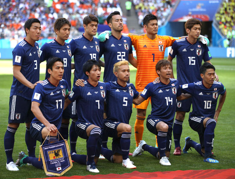 日本代表もホームキット。上から「青-青-青」を着用。