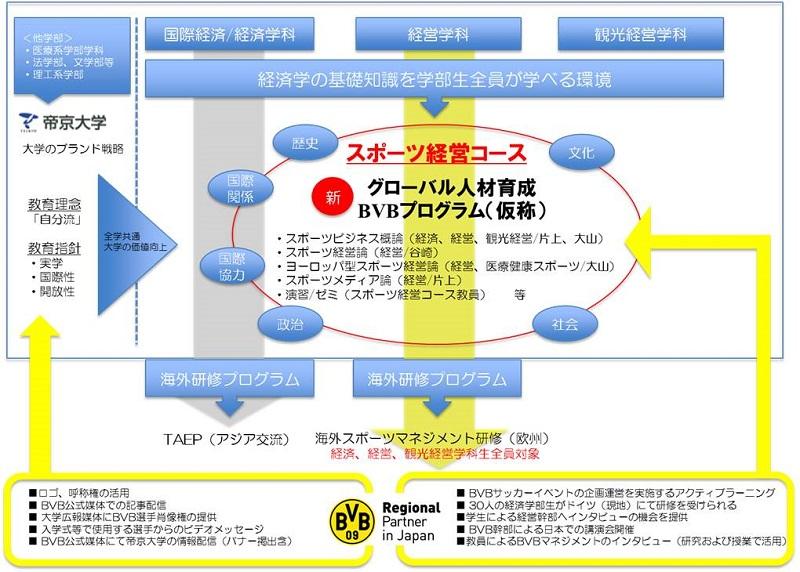 プレスリリースによると、「実学」「国際性」「開放性」を教育方針に掲げる帝京大学は本契約により、日本の教育機関として初めて、ドルトムントの持つ経営ノウハウを直接学べる環境を提供することを可能と致しました、と述べている。