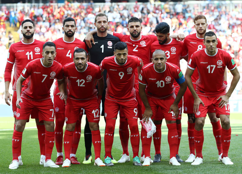 チュニジア代表もアウェイキット。上から「赤-赤-赤」を着用。