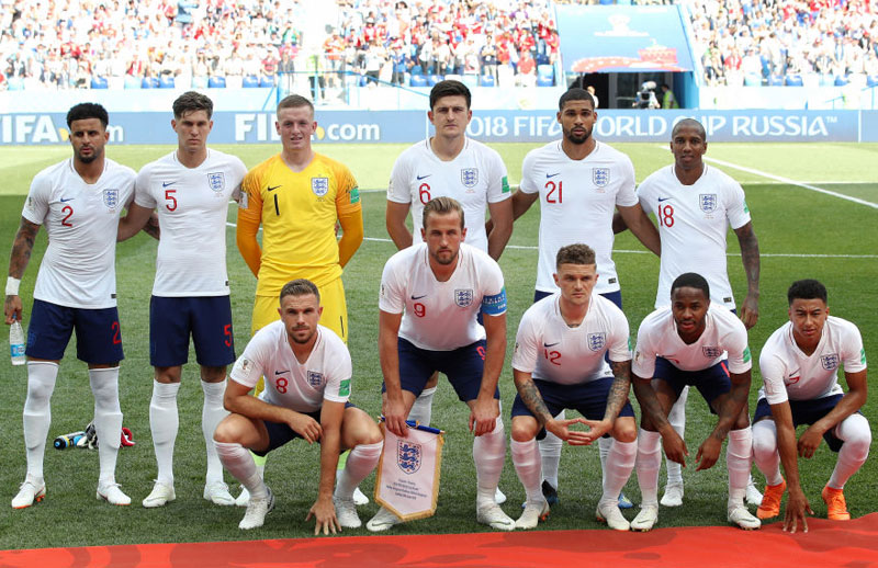 イングランド代表はホームキット。上から「白-紺-白」を着用。