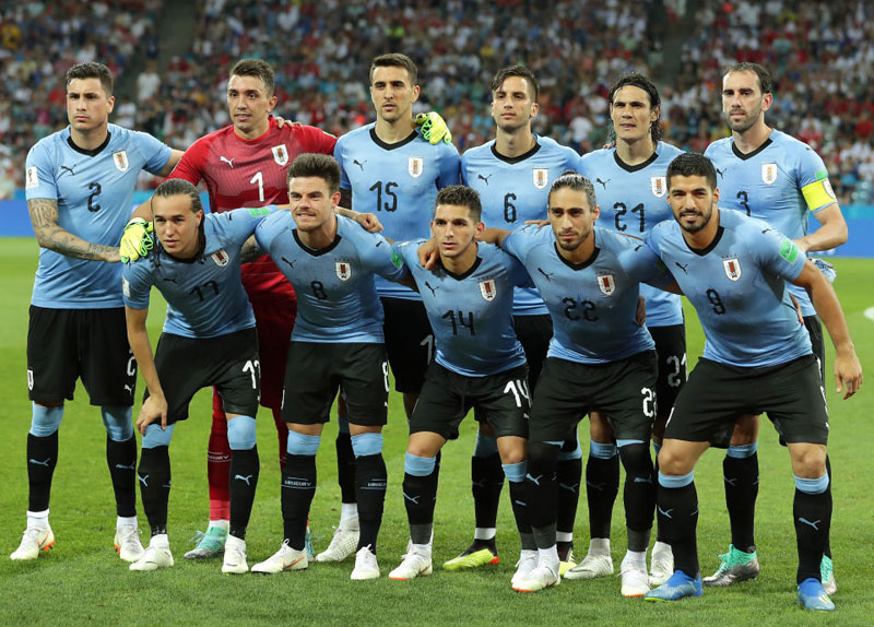 ウルグアイ代表はホームキットで、上から「青-黒-黒」。アウェイキットを着たグループステージ第1節以外は、ここまでこの組合せを着用している。
