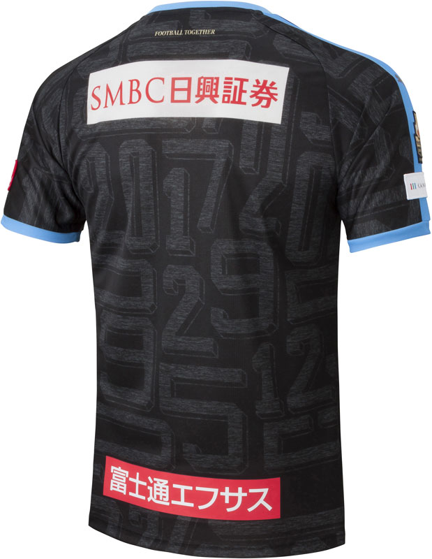 シャツは今季のホーム・アウェイ両ユニフォームに使われている「LIGA(リーガ)」モデル。ブラックをベースとしたダークカラーに、フロンターレ・ブルーのカラーコンビネーションを採用している。