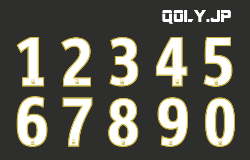アウェイキットの背番号を掲載。「ホワイトにゴールドの縁取り」は、ナンバーだけではなくネームも共通のカラーコンビネーションとなっている。