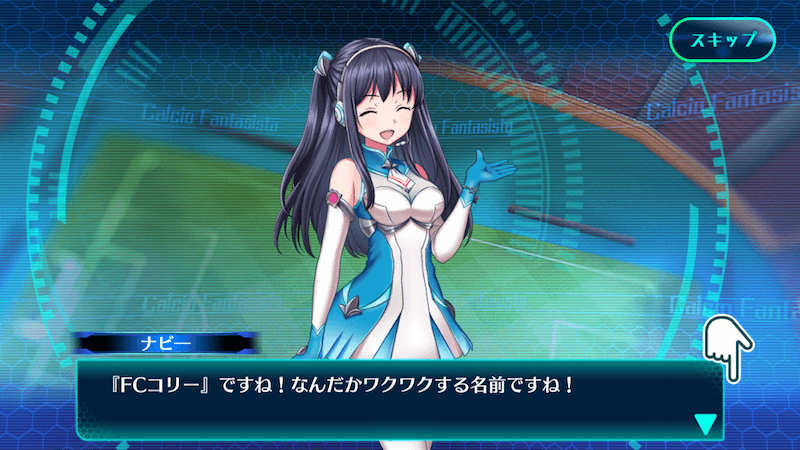 このあとナビーと名乗る少女はチーム名を問うてくるので、迷わず<FCコリー>というチームを作成した。