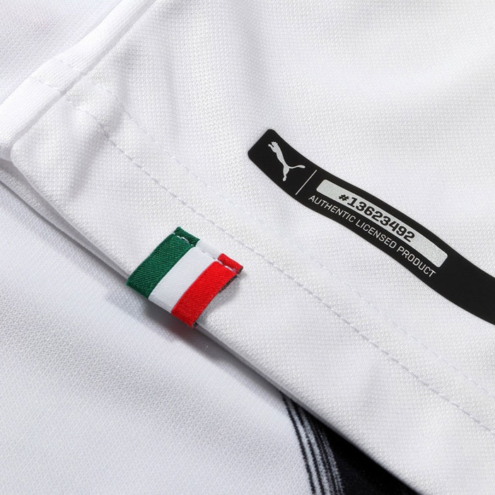 ホームキットと同様にシャツの左裾には、ミランのユニフォームではお馴染みのイタリア国旗のタブが付く。