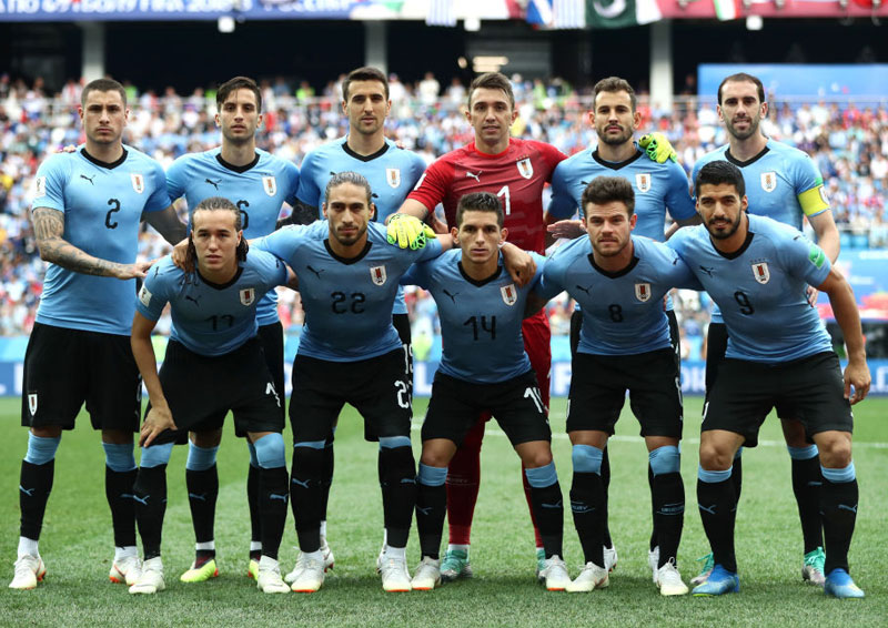 ウルグアイ代表はホームキットで、上から「青-黒-黒」を着用。グループステージ第1節を除いて、大会期間中はこの組合せを着用した。