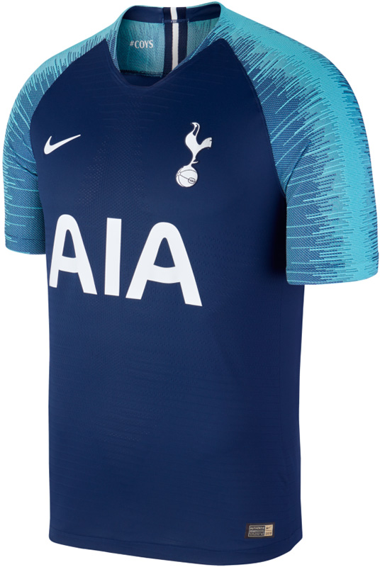 新しいアウェイは定番のネイビーを基調に明るめブルーという組み合せ。今までのトッテナムのキットには見られなかったカラーコンビネーションが完成した。