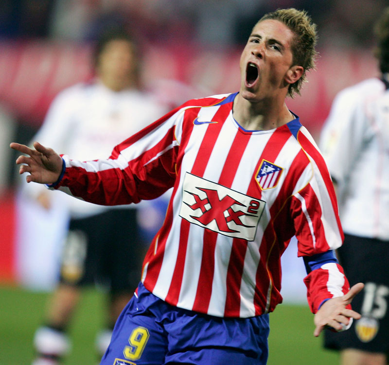 バレンシア戦でゴールを決めて咆哮するトーレス。胸スポンサーはこれまたアメリカ映画の「XXX 2(トリプルエックス2)」だ。