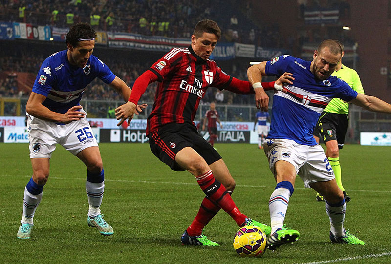 シーズン開幕直後の8月29日、ACミランへのローン移籍が発表された。この画像はプレシーズンマッチでの1枚。ユニフォームは2014-15ホームキットで、細めの水平ストライプがなかなかの好デザインだった。