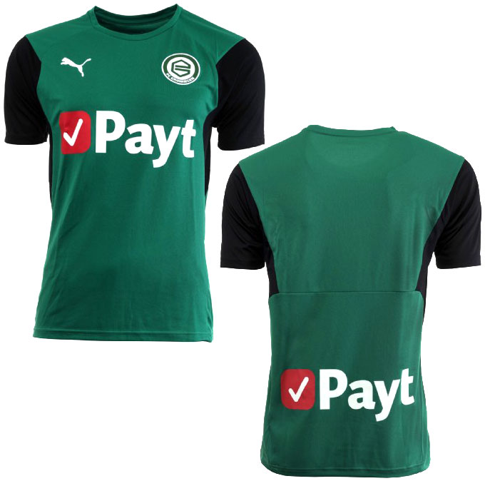 グリーンを基調としたトレーニングシャツは主に選手が着用。背面のスポンサーロゴは腰部分に掲出している。