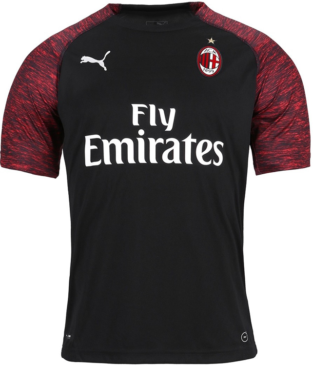 新しいサードキットは、ミランではお馴染みのブラックを基調に、袖部分はメランジ柄。基本的なデザインはマルセイユやアーセナルなどと同じで、2018-19シーズンのPumaのテンプレートだ。