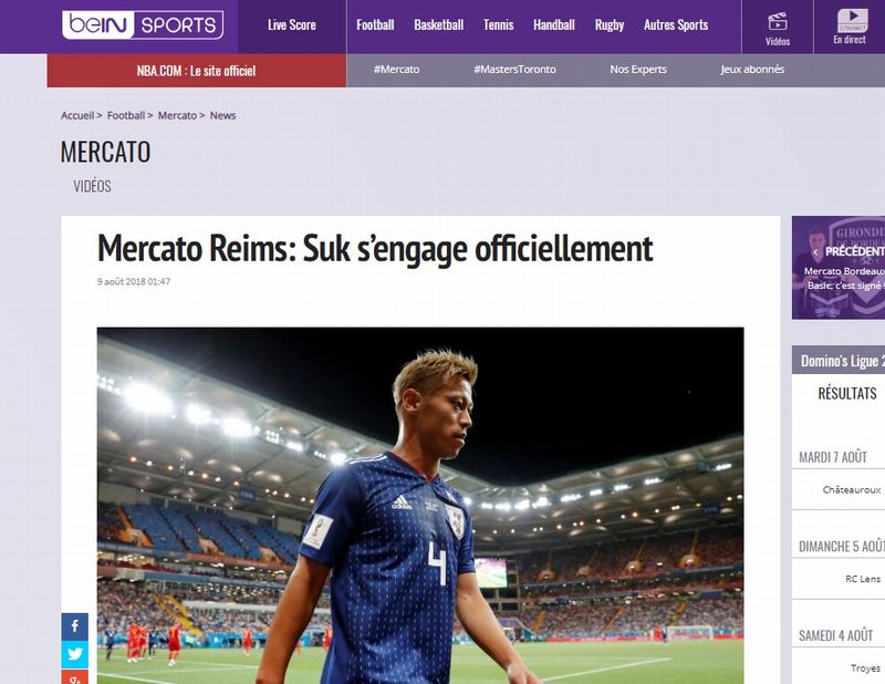 『BeIN Sports』は8日、「韓国代表FWソク・ヒョンジュンは、スタッド・ランスへと移籍した」と報じた。