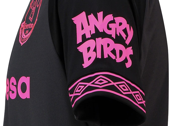 左袖には昨季から継続してモバイルゲーム「Angry Birds」のロゴを掲出。色はシャツに合わせてピンクで彩っている。