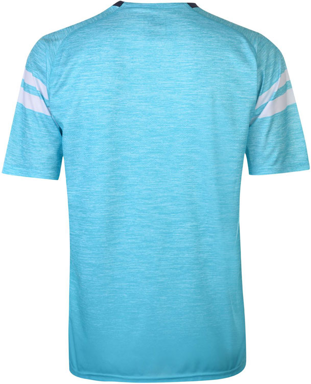 新しいサードキットは、2017-18アウェイキットに近い爽やかなライトブルー。メランジ柄で袖にストライプ(フープ)をあしらうデザインは、2018-19シーズンのPumaのテンプレートだ。