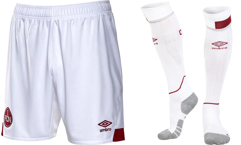 アウェイキットはパンツ、ソックスともにホワイトを基調に、メーカーロゴマークやエンブレムをディープレッドで彩る。