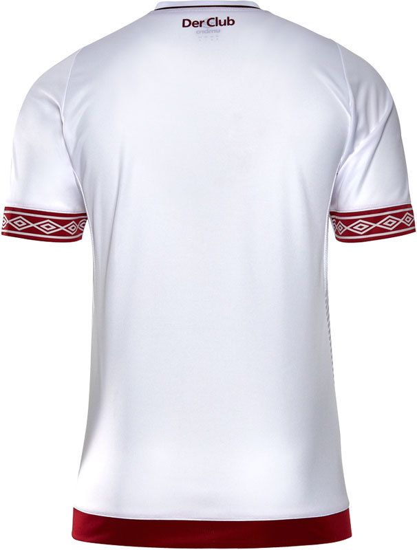 アウェイのホワイトも伝統的に使われている色。ホームと同様に斜めストライプをあしらっているが、ジグザグのグラフィックは、ニュルンベルクの街が属するバイエルン州の紋章や旗の模様を想起させる。