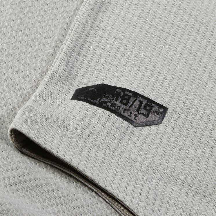 オーセンティックのエンブレムは熱圧着でプリント。レプリカの場合は刺繍仕上となる。