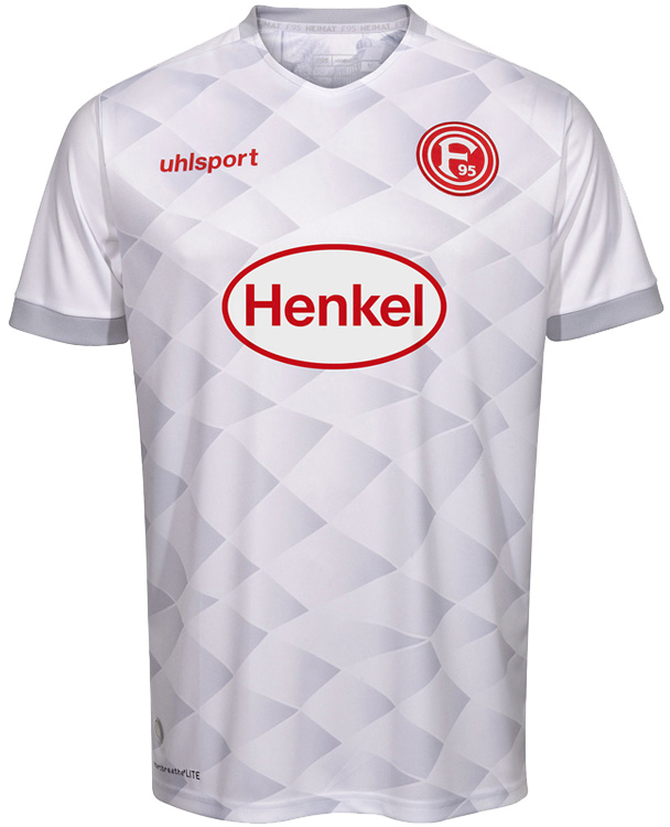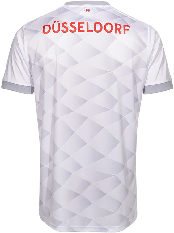 新しいアウェイキットはグレー/ホワイトを基調とし、少し歪んだ菱形のグラフィックが特徴的なデザイン。これはデュッセルドルフにある地下鉄ベンラーター・シュトラーセ駅構内の建築デザインを元にしている。