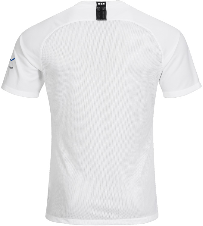 新しいアウェイキットは、エンブレムやスポンサーロゴ以外に差し色を当てないシンプルなカラーリング。胸元の仕様はシングルボタン止め。ここまでホワイトを強調したキットは、Jako製だった2007-08シーズンのアウェイキット以来だ。