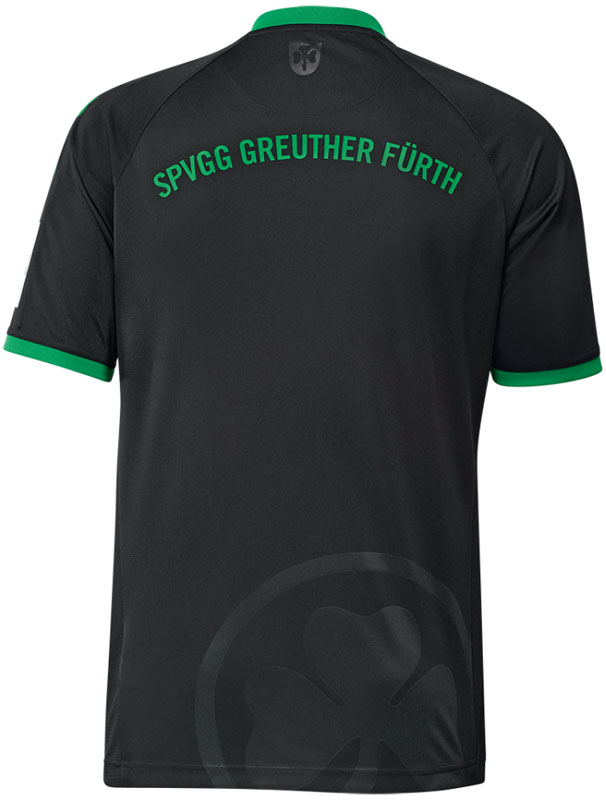 背面の首元にはフュルト市の紋章をエンボスでプリント。腰部分にはチームエンブレムの大きな透かしプリントが入る。