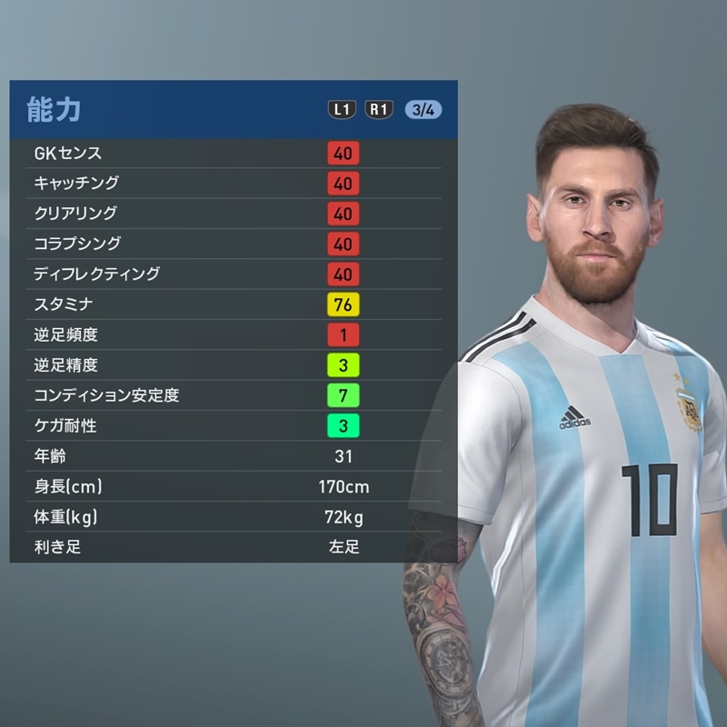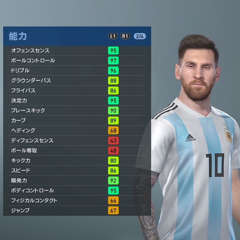 まずはメッシ。個人での打開、驚異の決定力に加え、味方を使う能力も超一流。スキルも得点に繋がる効果的なものが多そうだ。