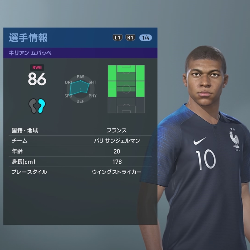 フランスの超新星エンバペはさすがのスピード!ドリブルや決定力も高く、まさにウイングストライカーといえる。ラボーナもやっちゃう?