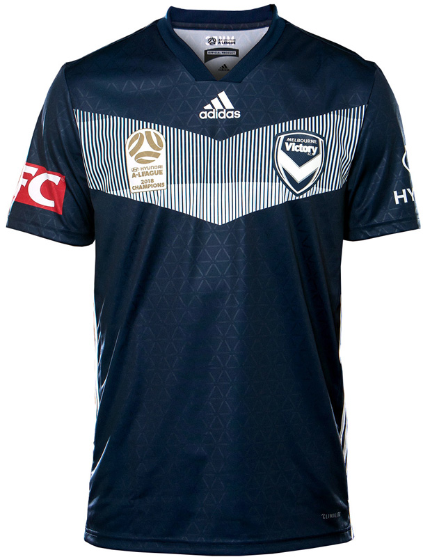 昨季のリーグ王者として臨む新シーズンも、胸にシェブロン(V字)のグラフィックが伝統的なデザイン。このキットを着てクラブはAリーグ連覇を目指す。